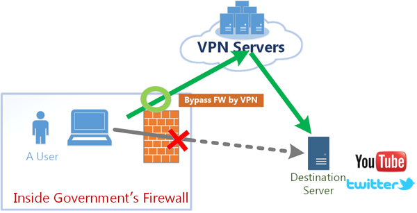 If the governmental firewall is malfunctioning, or when some websites abroad are unreachable within the firewall, you can access them by relaying your connection to VPN servers located outside of your territory of residence.